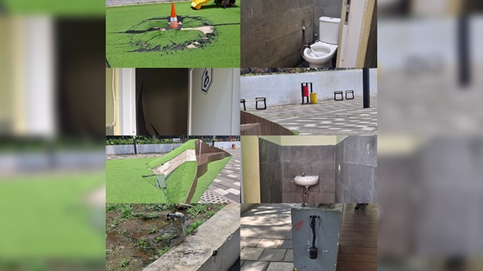 Kerusakan fasilitas termasuk kesalahan pemerintah. Mengapa? Pertama, terkait alokasi anggaran dan perawatan rutin. Pemerintah bertanggung jawab untuk melakukan perawatan rutin dan percepatan perbaikan. Jika kedua hal tersebut dilakukan dengan baik, maka kerusakan yang terjadi tidak akan fatal dan berkepanjangan. Contohnya, toilet yang menunjukkan kurangnya perawatan, lalu ada juga rumput sintetis yang kondisinya sudah sangat rusak, bahkan sudah ditandai oleh traffic cone yang menunjukkan bahwa kurangnya perhatian pemerintah dalam melakukan perbaikan secara cepat. Jadi, kedua contoh tersebut menggambarkan tugas pemerintah dalam melakukan perawatan rutin dan percepatan perbaikan tidak dilakukan dengan efektif.
