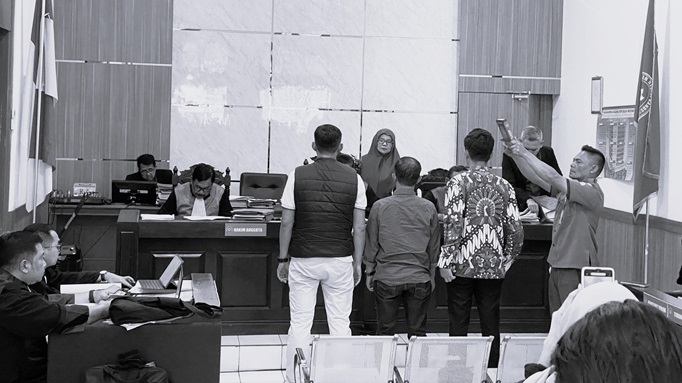 BandungBergerak.id – Enam warga Sukahaji RJG, PS, AS, WY, S, YR, dan CS menghadapi sidang kelima di Pengadilan Negeri Kota Bandung, Selasa, 25 November 2025. Sidang kali ini menghadirkan tiga saksi dari pihak penggugat yang terdiri dari, satu saksi dari pihak pelapor yakni Ahmad Boma serta dua saksi dari warga yang tinggal di Sukahaji yakni Dadan Ramdani dan Asep Djuheri atau Heri Coet.