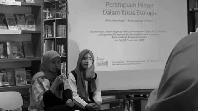Pembahasan itu menjadi topik diskusi dalam rangkaian peringatan 16 Hari Anti Kekerasan Terharap Perempuan (HAKTP) yang diselenggarakan secara kolektif oleh Koalisi Bandung Lautan Damai dan Iteung Gugat, di Perpustakaan Bunga di Tembok, Bandung, Jumat, 28 November 2025. Diskusi bertajuk “Perempuan dalam Krisis Ekologis: Dampak Konflik Agraria dan Ekstraktivisme di Indonesia” ini menghadirkan pembicara dari Walhi Jabar Siti Hannah Alaydrus dan perwakilan dari Perkumpulan Inisiatif Wulandari. Diskusi dimoderatori oleh Sagita Asyifa.