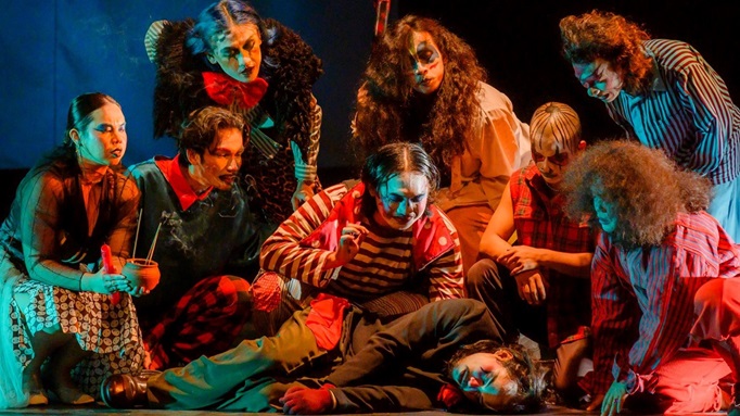 Sejak menit pertama, pertunjukan ini tak ingin berjalan linear atau realistis. Dalam adegan pembuka, Doski–sosok yang tampak ambisius itu rupanya sudah jengah pada kepemimpinan Charlie, lalu secara brutal membunuh pemimpin kelompok itu. Ribut-ribut terjadi, dan Doski melayangkan beberapa tusukan di perut Charlie, naskah direbut, lalu peran sutradara sukses diambil paksa. Saya mulai agak tersenyum getir melihatnya, adegan ini tampak sebagai mini kudeta, yang menjadi metafora vulgar tentang bagaimana kekuasaan sering berganti: bukan lewat legitimasi, melainkan lewat perebutan paksa.