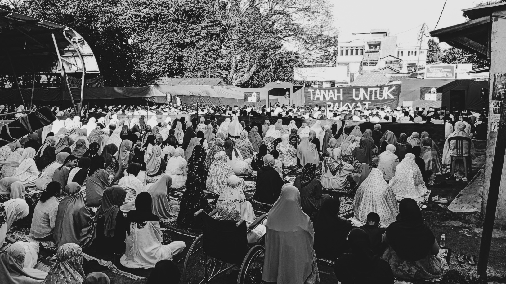 Allahu akbar, allahu akbar, allahu akbar. La illaha illallahu wallahu akbar! Di Dago, gema takbir berkumandang seperti huruf alif ratusan orang jemaah segala usia berdiri mengangkat tangan menghadap kiblat dengan sajadah dan koran bekas sebagai tikar pengganjal. Perjuangan mempertahankan hak atas ruang hidup, seperti yang disampaikan warga dalam orasi sebelum ceramah, tidak boleh berhenti.