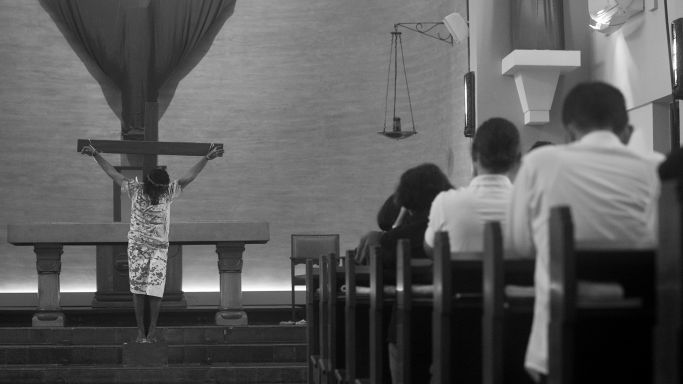 BandungBergerak - Garis-garis sinar matahari pagi menembus kaca patri di sisi timur dinding tinggi Biara Santa Ursulin, Bandung, 3 April 2026. Suasana hening—hanya terdengar gumam para novis yang bersiap memainkan tablo Jalan Salib dalam misa Jumat Agung. Mereka akan menghidupkan kisah sengsara Yesus Kristus hingga wafat di tiang salib.