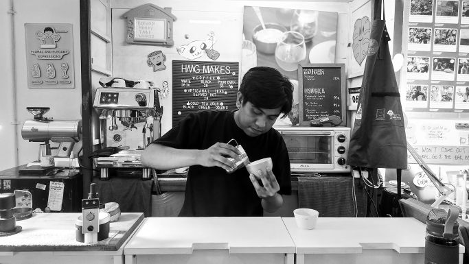 Adin baru mengenal kopi pada usia 18 tahun, saat diterima bekerja di Homage Makes pada Mei 2024. Sebelumnya, ia melamar ke lebih dari 30 kafe di Bandung—semuanya menolak karena menilainya minim pengalaman.