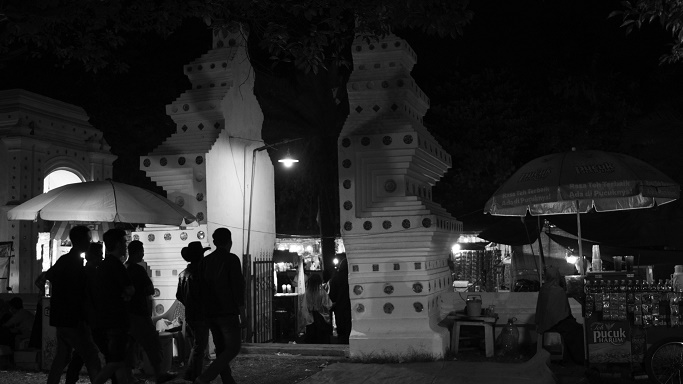 Di sudut keraton yang lain, warga berduyun-duyun mencari jajanan di lapak-lapak pedagang makanan dan minuman. Suasananya khas pasar malam, ada gerai busana dan permainan anak-anak. Di pojokan yang sedikit gelap beberapa remaja dan orang tua terlihat sedang dibaca garis nasibnya melalui telapak tangan.