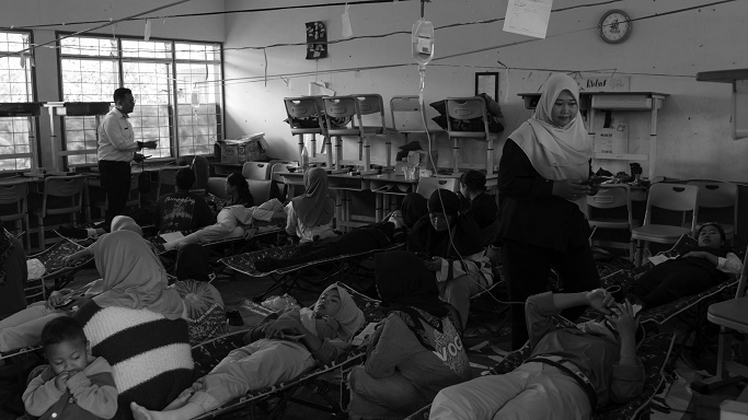 Salah seorang murid, Arsaka tergolek lemah di salah satu ruangan kelas. Jarum infus menembus lengan, selang oksigen terpasang di hidung murid SDN Garuda berusia 10 tahun tersebut. Linda, 12 tahun, juga mendapat perawatan di dalam ruang kelas. Mual dan sakit perut hebat mendera tubuh siswi SDN Barukai tersebut.