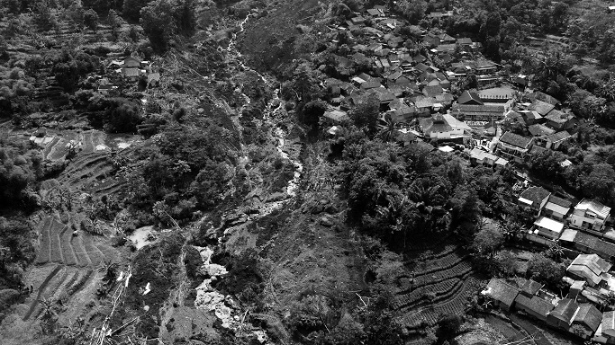 “Masih trauma waktu kejadian longsor, saya lihat air mengalir deras di bawah halaman rumah, banjir dan longsor datang setelah hujan mereda, lalu saya mendengar suara gemuruh, yang saya lihat waktu itu kok pohon-pohon semua tumbang, semakin dekat kea rah kampung bersama longsoran tanah,” kata Titin, 45 tahun, rumahnya persis berada di batas antara longsoran tanah dari bukit dan jalan kampung yang masih utuh sebagian.