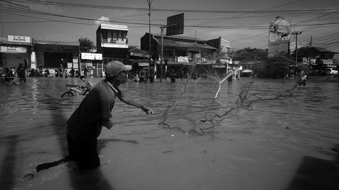 Pekan pertama Desember 2025, kawasan sekitar SPBU Pertamina di Andir, Kecamatan Baleendah, Kabupaten Bandung, yang tak pernah lagi banjir dalam beberapa tahun terakhir tiba-tiba jadi kolam pancing dadakan. Warga menangkap ikan dengan jaring dan joran pancing.