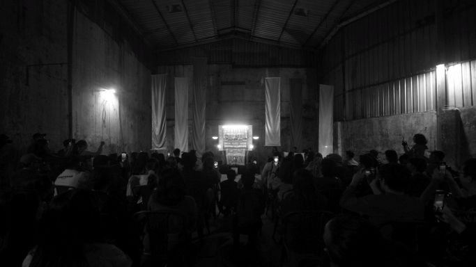 Semakin sore semakin banyak penonton berdatangan. Mereka menyibak tirai kertas berwarna merah muda dan kuning di bangunan tua bekas pabrik sabun yang kini bersalin rupa jadi ruang persilangan antara seni, sejarah, budaya, dan keseharian Tjap Sahabat.