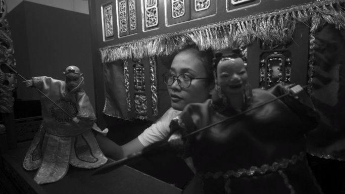 Wayang potehi Sanggar Siauw Pek San tampil dalam bahasa Indonesia di panggung Asia dan Eropa, memadukan warisan leluhur dengan sejarah nasional dan tema kekinian.