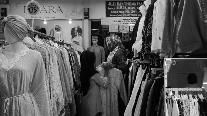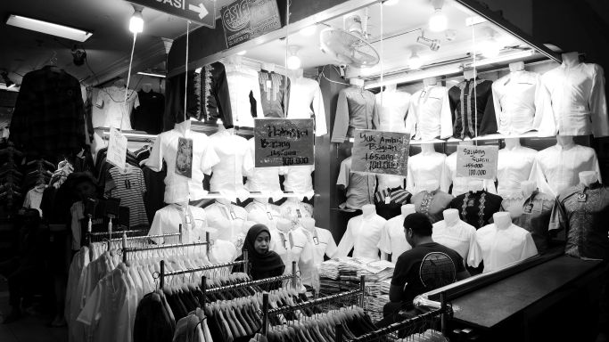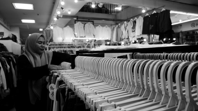 BandungBergerak - Deretan kios di Balubur Town Square dan Pasar Baru, Bandung, biasanya riuh oleh pembeli. Kini, menjelang Idulfitri, suasana itu menghilang. Gamis tergantung rapi, kerudung menunggu dipasangkan, tetapi orang-orang tampak lebih menghitung dompet daripada memilih model pakaian.