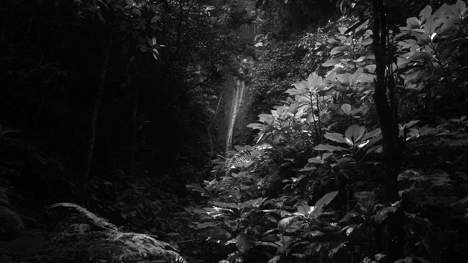Vegetasi hutan dan air terjun kecil di tengah hutan kawasan Taman Hutan Raya Ir H Djuanda, Kabupaten Bandung Barat, 26 Oktober 2025. (Foto: Prima Mulia/BandungBergerak)Meniti Hening Tahura