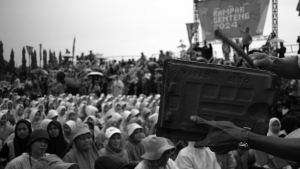 Aksi Kamisan Jatinangor mengkritik pernyataan Presiden Prabowo Subianto tentang solusi dua negara untuk konflik Israel Palestina.