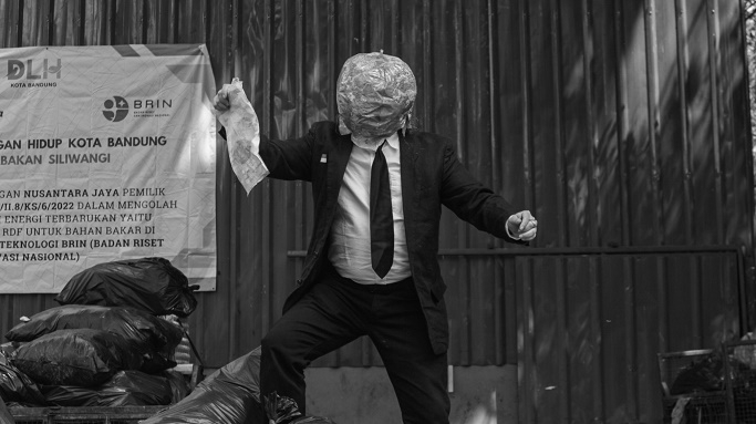 Seniman Isa Perkasa usai upacara Hari Kemerdekan RI ala seniman dengan tema Upacara Kemerdekaan Runtah di TPST dan insinerator di komplek Sabuga dan Hutan Kota Dunia Babakan Siliwangi, Bandung, 17 Agustus 2025. (Foto: Insan Radhiyan Nurrahim/BandungBergerak)Menyoal Perwal Kota Bandung dan Krisis Cara Pandang terhadap Budaya