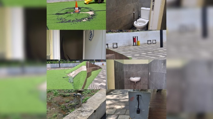Kolase – kondisi fasilitas umum di Taman Monumen Perjuangan Jawa Barat (Monju) di Kota Bandung. (Foto: Kalista)MAHASISWA BERSUARA: Rusaknya Fasilitas Umum Taman Monumen Perjuangan (Monju), Salah Siapa?