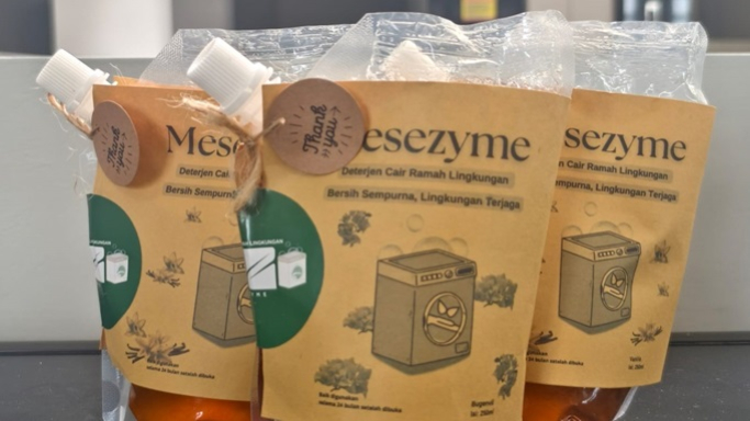 Mesezyme detergen cair ramah lingkungan. (Foto: Dokumentasi Meinisa Syifa Azzahro)Memanfaatkan Limbah Kulit Buah dan Sayur Menjadi Detergen Cair Ramah Lingkungan