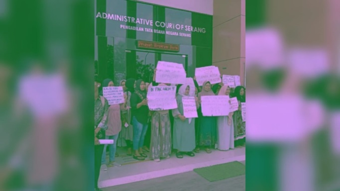 Ibu-ibu Cibetus Padarincang di Pengadilan Tata Usaha Negara (PTUN) Serang, Banten. (Foto: Dokumentasi Joenietz)Ketika Negara Menutup Mata, Ibu-ibu Cibetus Banten Menjadi Benteng Terakhir Lingkungan