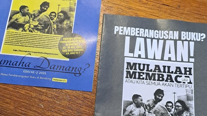 Zine pemberangusan buku karya Deni Rachman. (Foto: Tri Joko Her Riadi/BandungBergerak)BANDUNG DARI PINGGIR: Menyebar Biji di Tembok Berduri