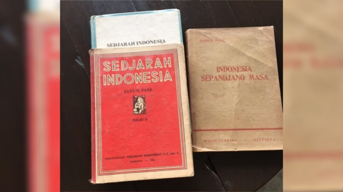 Indonesia Sepandjang Masa dan dua jilid Sedjarah Indonesia karya Sanoesi Pane. (Foto: Anton Solihin)Pengalaman Berhubungan dengan Buku Sejarah Nasional