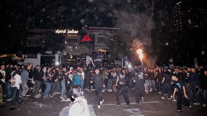 Aksi di depan DPRD Jawa Barat, Bandung, 28 Agustus 2024. (Foto: Fawaz (@vawazvawaz_))Merayakan Hari Tanpa Hadirnya Negara