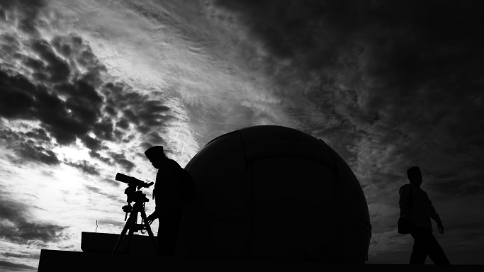 Seorang pria mengamati hilal sebagai penentuan kalender Hijriah di Bandung, April 2022. Tradisi mengamati hilal ini dilakukan umat Islam menjelang dan akhir Ramadan. (Foto: Prima Mulia/BandungBergerak.id)MAHASISWA BERSUARA: Islam dan Tradisi