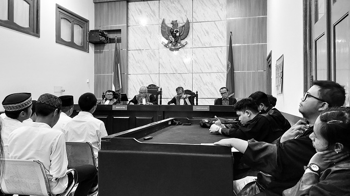 Sidang putusan sela untuk delapan terdakwa terkait aksi Agustus-September di Pengadilan Negeri Bandung, Selasa, 9 Desember 2025. (Foto: Awla Rajul/BandungBergerak)Eksepsi Ditampik, Sidang Terdakwa Demonstrasi Agustus–September Berlanjut ke Pembuktian